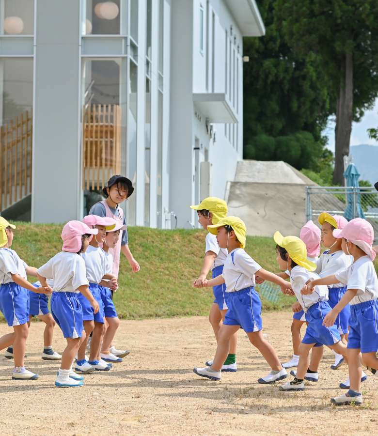 園児が手を合わせる様子を表現しています。